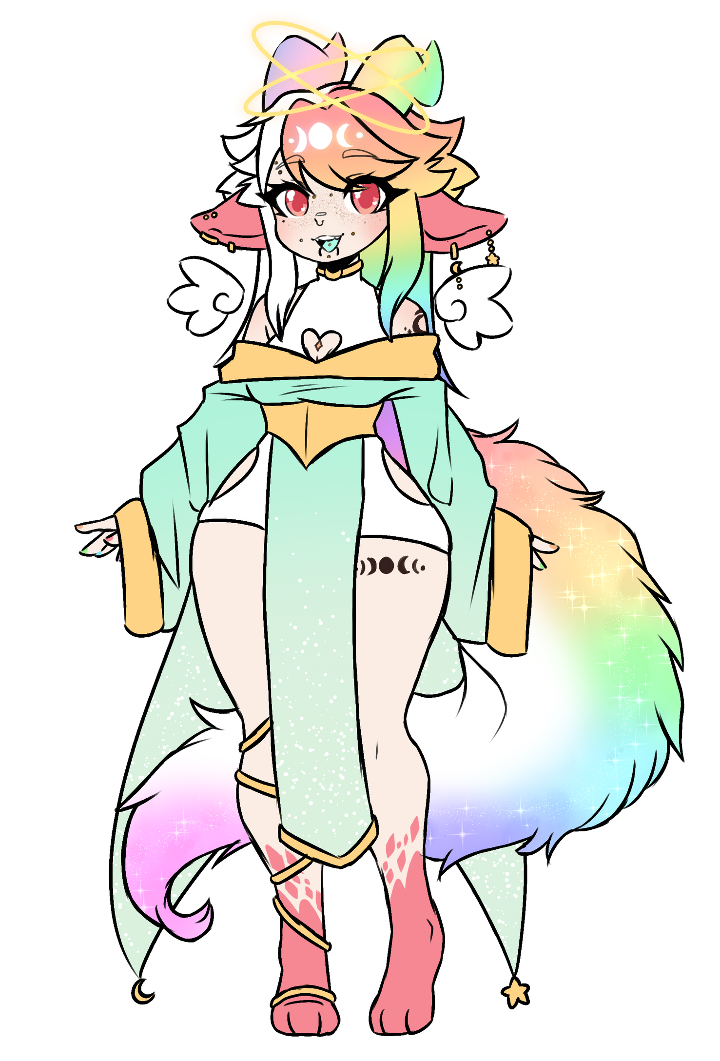 | ZeeZee, or simply Zee, is a celestial chimera sent down from the stars long ago. A goddess tied to the moon and constellations, Zee exists between divine and mortal, never bound to a single shape. They are a natural shapeshifter, able to change their ears, tail, horns, and form as easily as breathing. Though worshipped as a goddess, Zee walks among others not to rule, but to watch, protect, and share wonder. When the night feels calm and the stars seem just a bit closer, it is said Zee is nearby, keeping the sky in balance. |